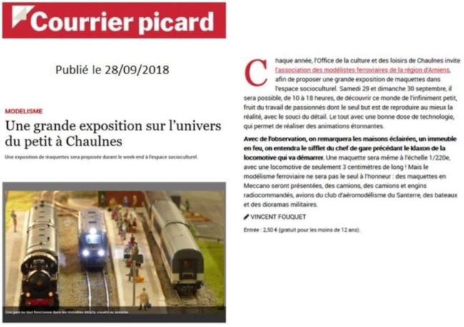 Le Courrier Picard, extrait de ses éditions des 28 et 29 septembre 2018 :