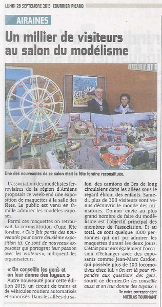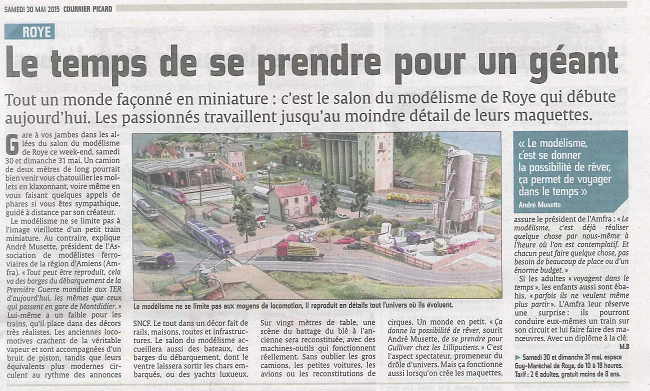 Article paru dans le Courrier Picard le Samedi 30 Mai 2015 cliquez sur l'article pour l'agrandir