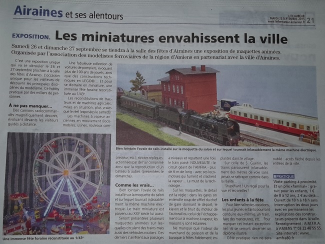 L'AMFRA a présenté une exposition de modélisme dans la ville de Roye. Cliquez sur l'image ci-dessous pour voir le programme: