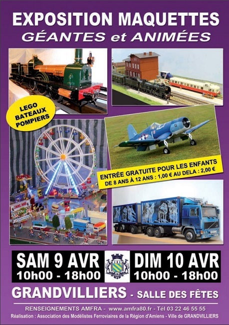 L'AMFRA organise sa seconde exposition de l'année à la salle des fêtes de Grandvilliers, les 09 et 10 avril. Les différents thèmes du modélisme sont présentés.