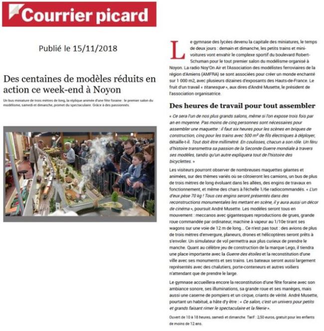 Le Courrier Picard, extrait de son édition du 15 novembre 2018 :