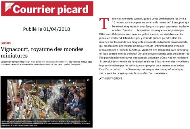 Le Courrier Picard, extrait de ses éditions des 30 mars et 01 avril 2018 :
