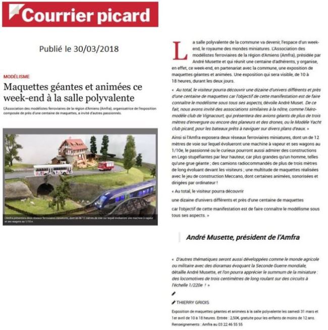 Le Courrier Picard, extrait de ses éditions des 30 mars et 01 avril 2018 :
