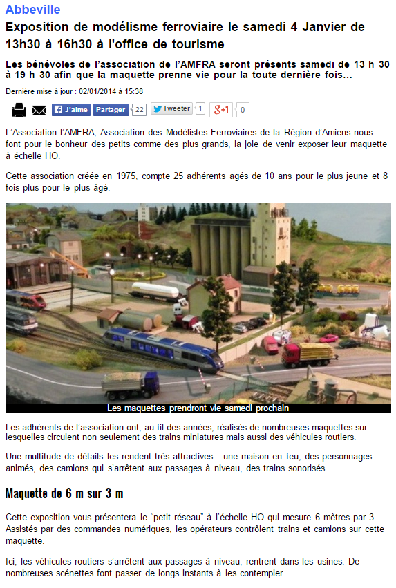 L'AMFRA a présenté une exposition de modélisme dans la ville de Roye. Cliquez sur l'image ci-dessous pour voir le programme: